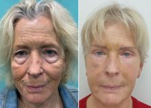 Klientka po vyplnění vrásek vlastním tukem a po operaci horních víček